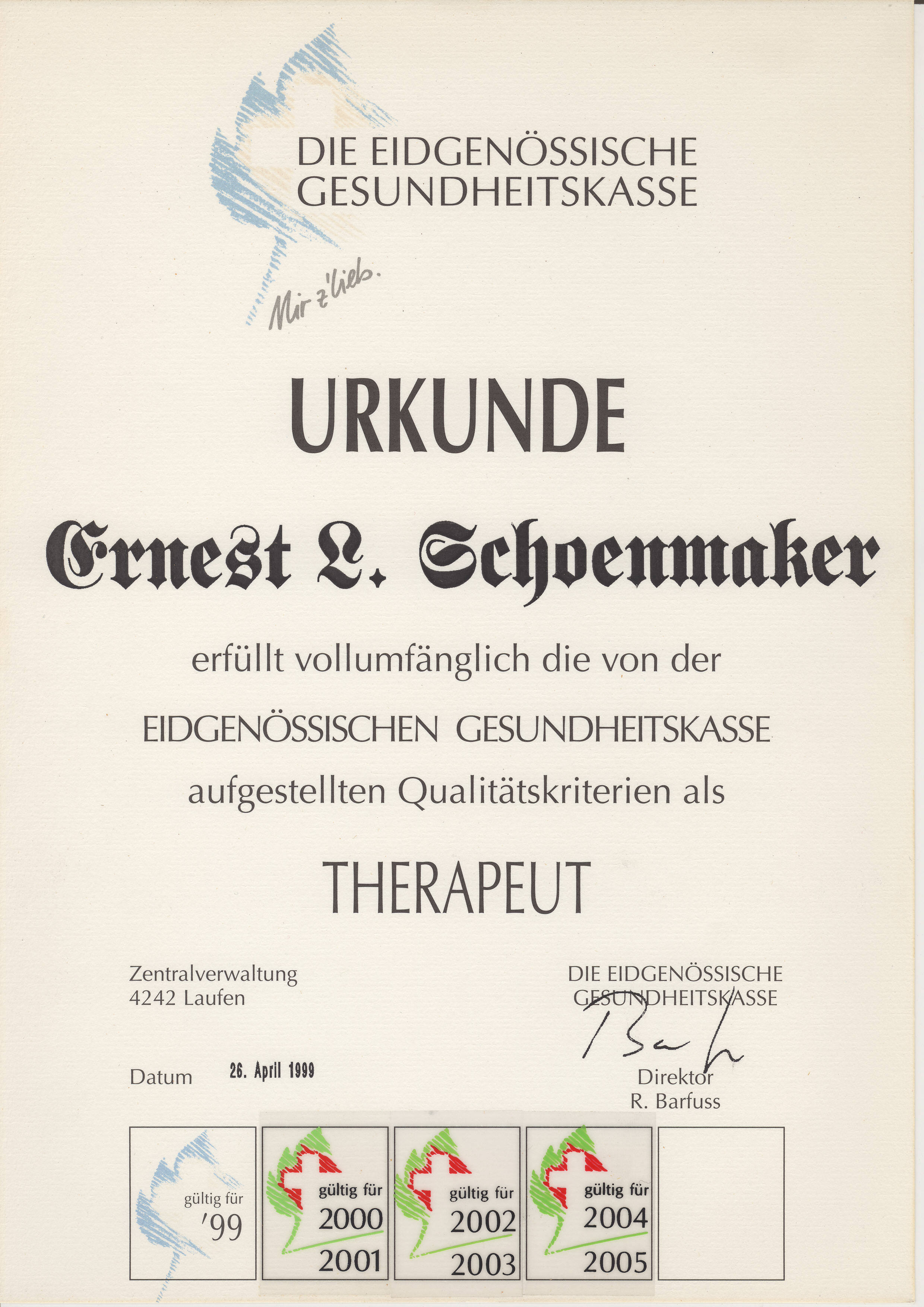 Urkunde EGK Therapeut 04.1999